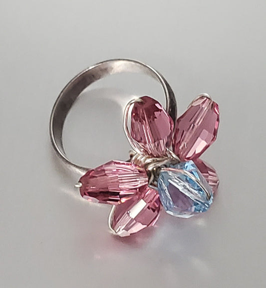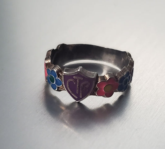 3574-Colorful Sterling Silver Flower Ring sz 7