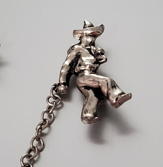 1682-Vtg Silver Tone Man & Donkey Brooch