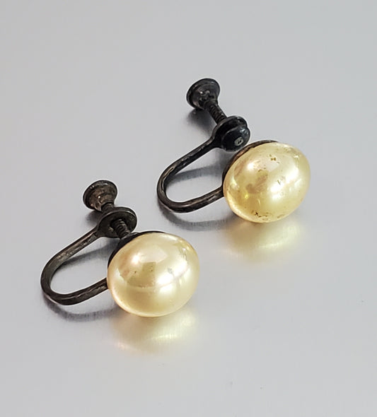 2782-Signed Pearl & Sterling Silver Dangle Earrings
