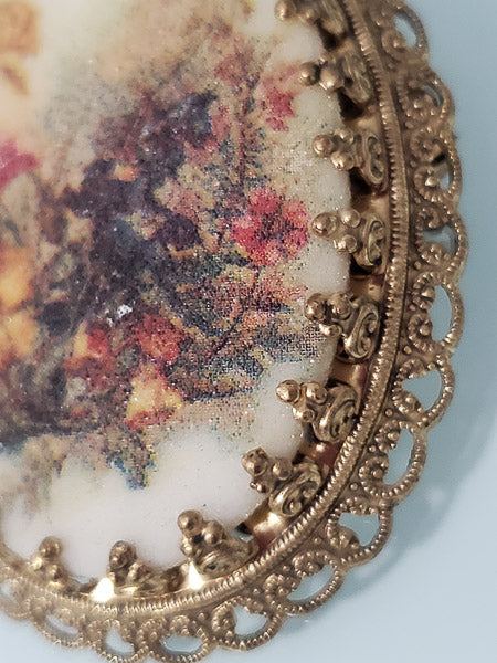 Vtg Gold Filled Krementz Carved Coral Roses Brooch
