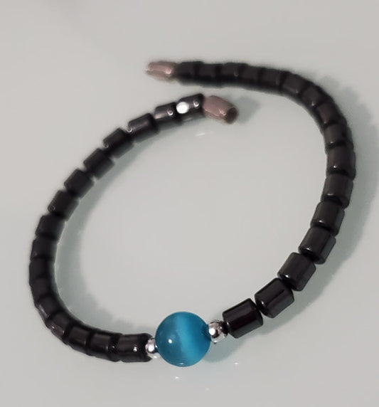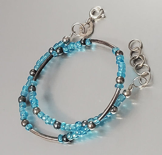3262-Inlaid Crushed Stone Sterling Baby Cuff Bracelet