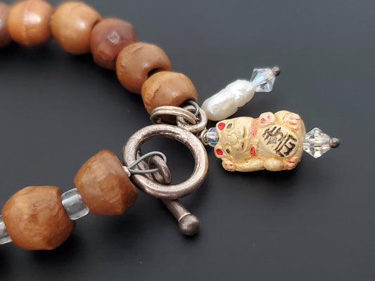 3660-Large Wood & Stone Sterling Charm Bracelet