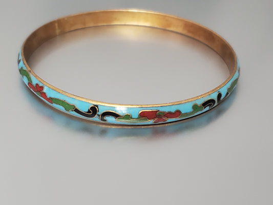 2994-Signed Enamel Gold Tone Bangle Bracelet