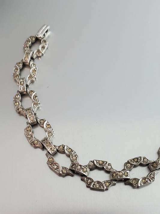 4164-Vtg Rhinestone Sterling Silver Bracelet