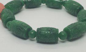NWT Burmese Green Jade Carved Stretch Bracelet