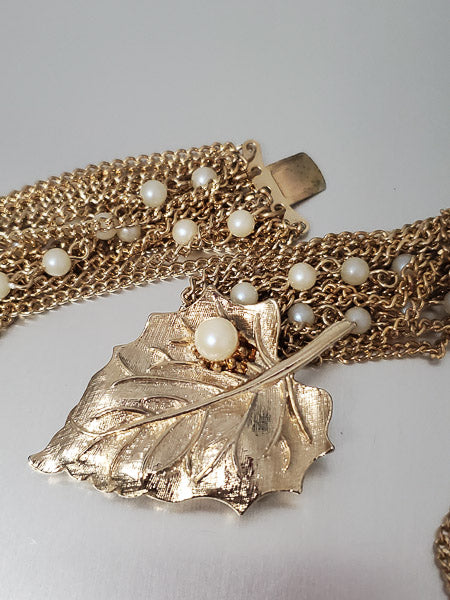 4092-Vintage Leaf Clasp Multi-Strand Necklace