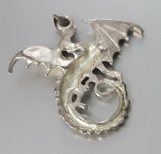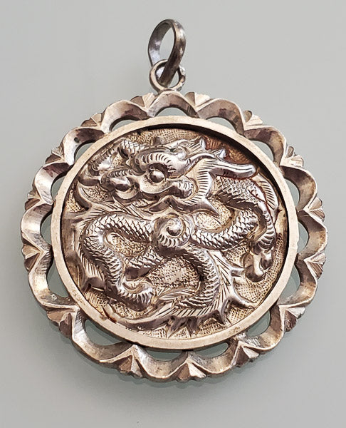 902-Large Chinese Dragon Cartouche Sterling Pendant