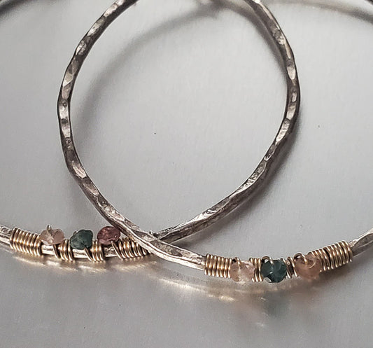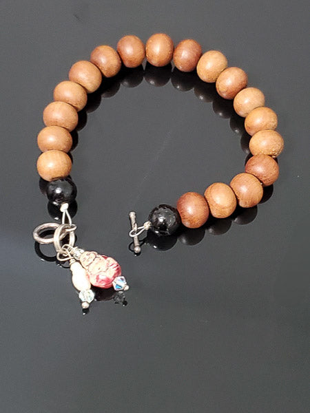 3660-Large Wood & Stone Sterling Charm Bracelet