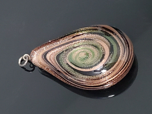 3724-Earth Tone Art Glass Sterling Silver Necklace