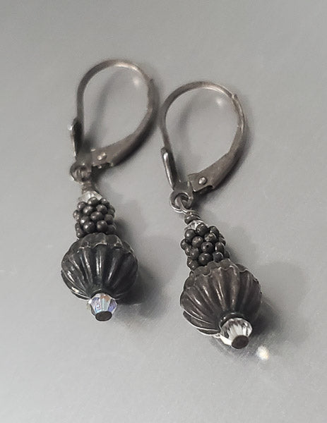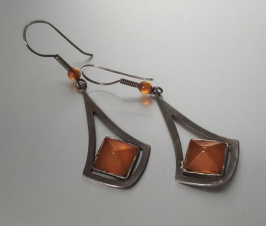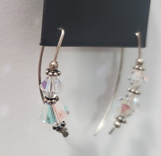 3672-Stone & Pearl Sterling Silver Drop Earrings