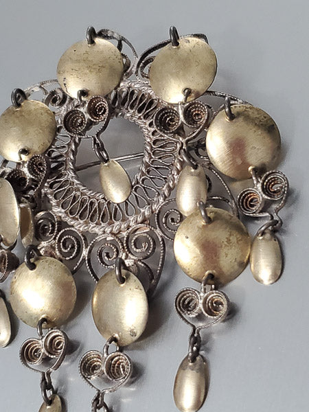 3726-Antique 830 Silver Norwegian Filigree Brooch