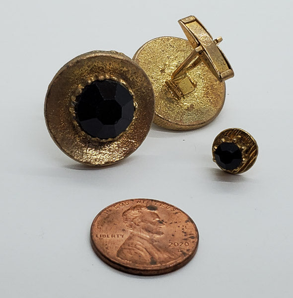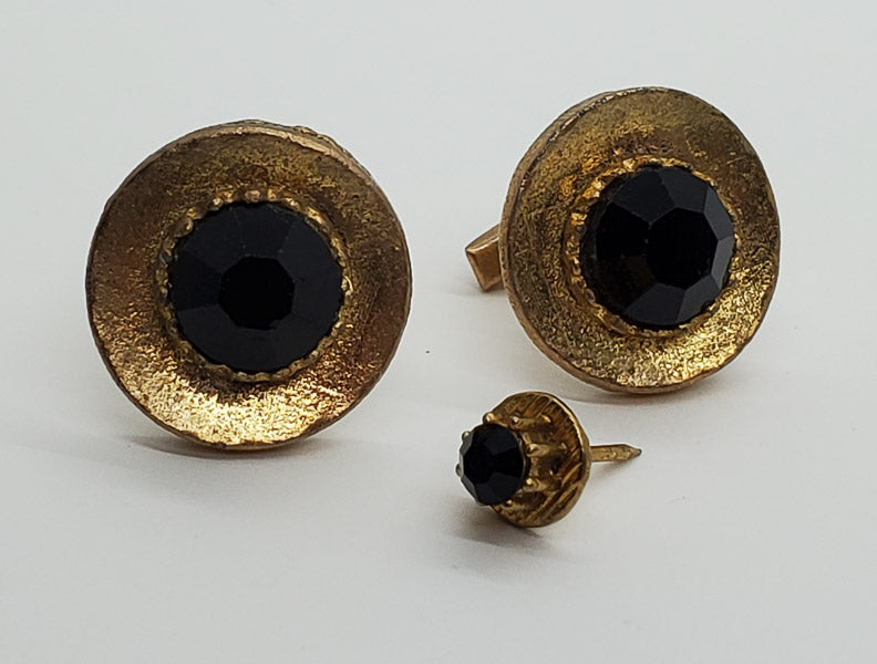 2377-Vintage Glass Cufflinks and Tie Tack Pin