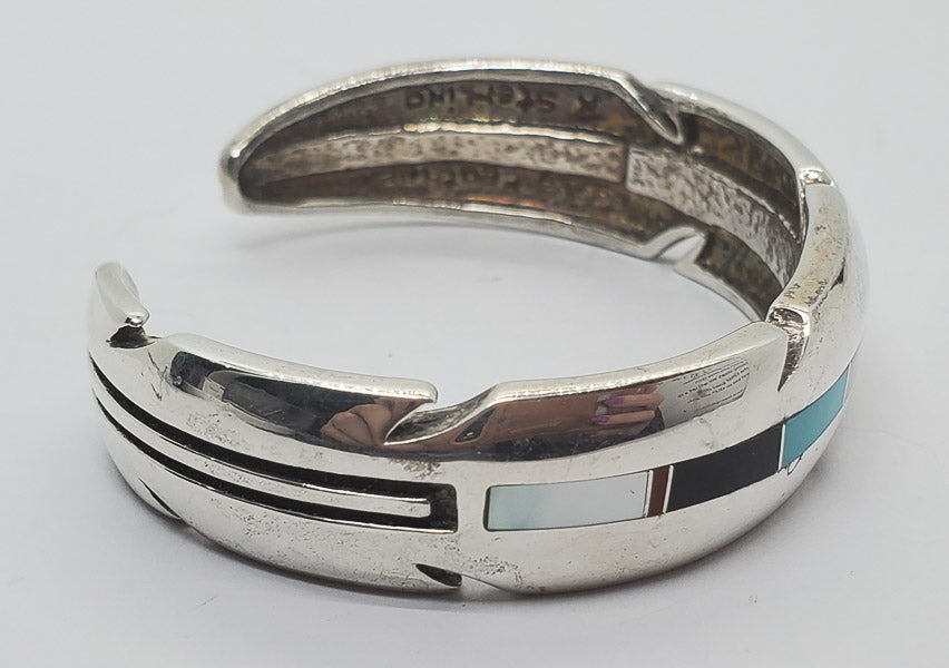Native Signed Eagle Feather Sterling Cuff Bracelet