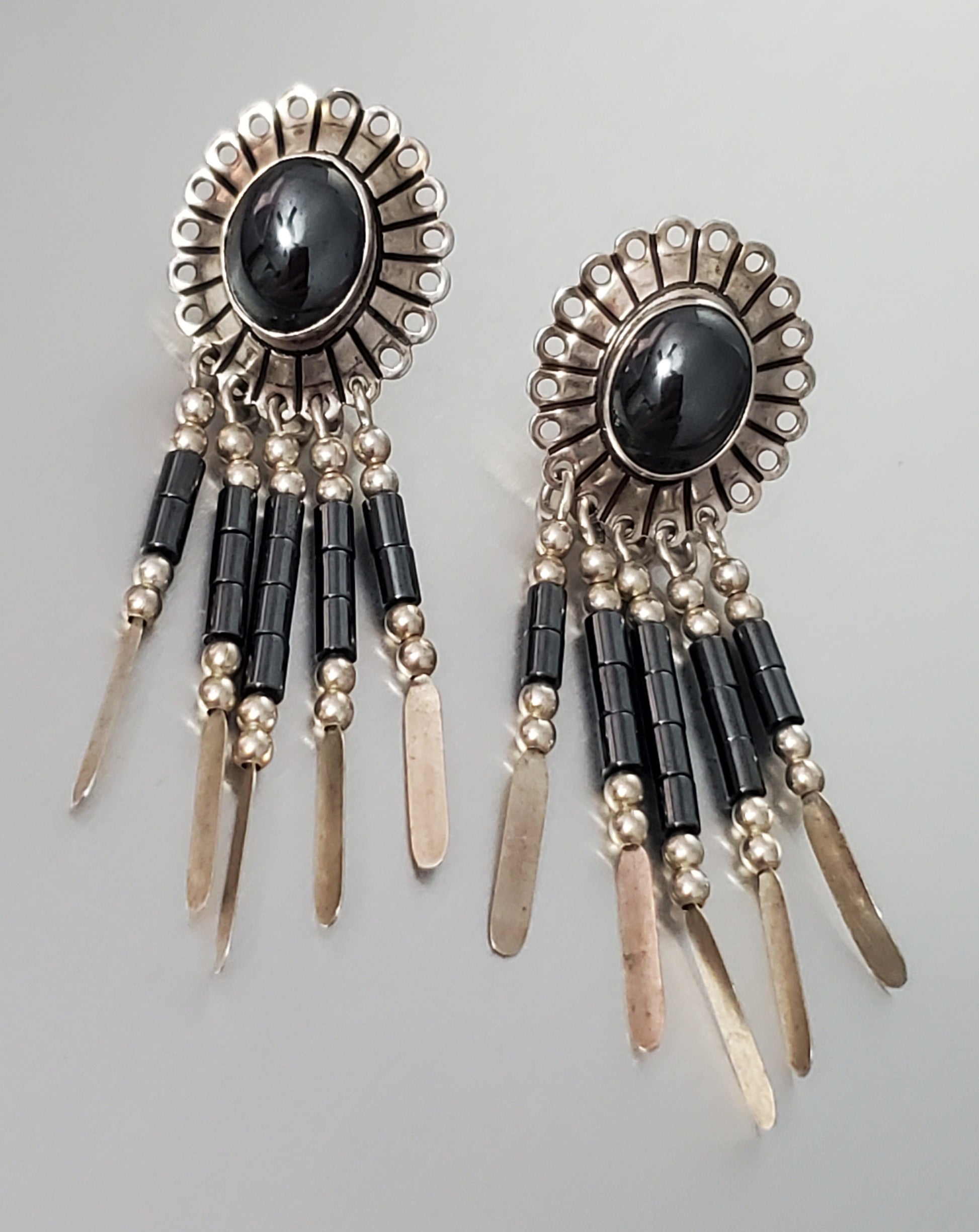 2770-Sterling & Stone Concha Dangle Earrings